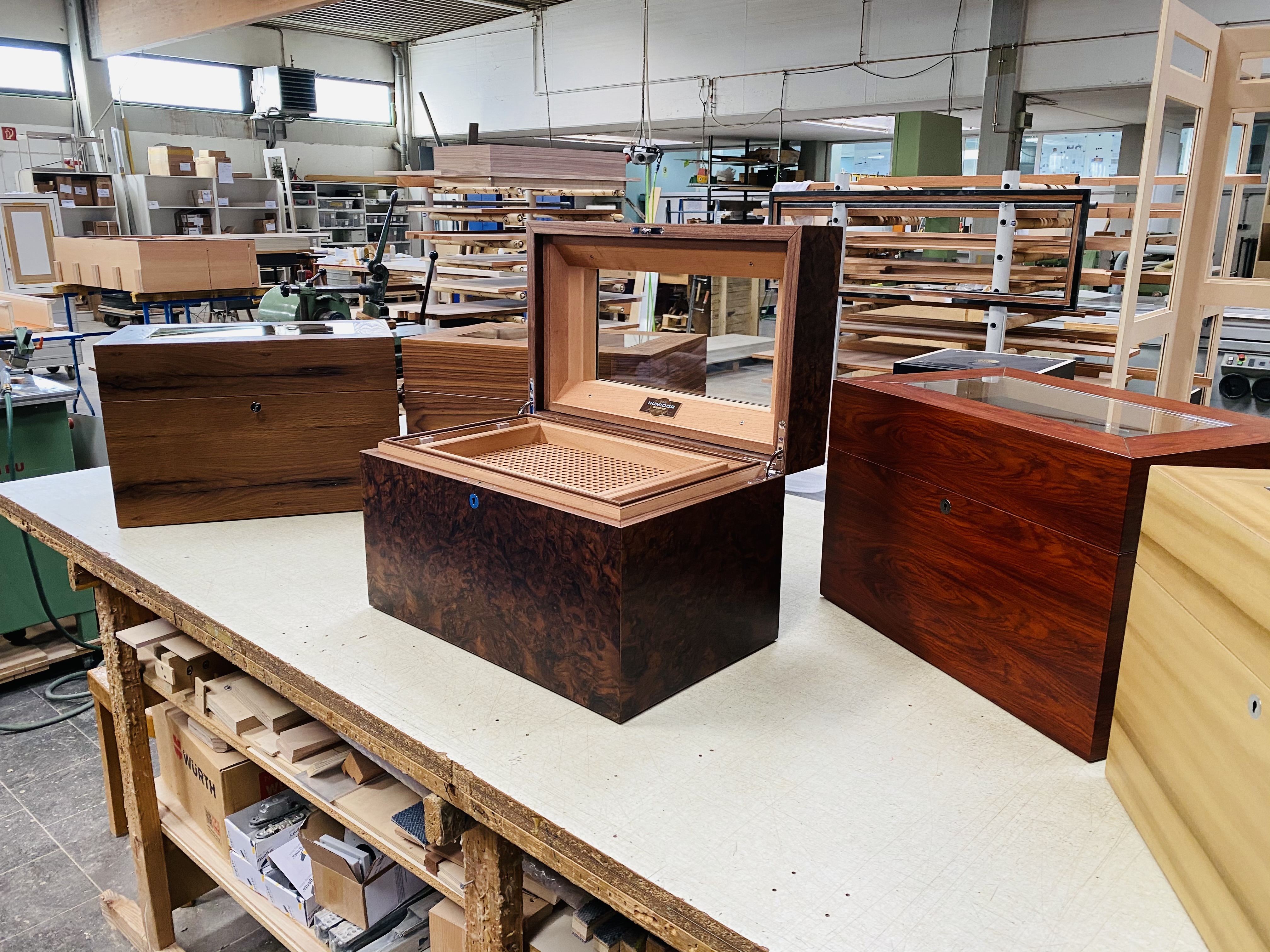 It is also possible to choose a base with a strikingly different appearance: perhaps a colorfully lacquered Cube humidor sitting atop a base of clear opti-white glass. As the manufacturer, we welcome the individual wishes and ideas of our customers.